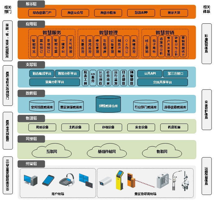 因此,本期三臺山森林公園項目是改造提升項目,故需在原有信息化的基礎(chǔ)上進一步完善基礎(chǔ)設(shè)施建設(shè),形成真正的一體化智慧景區(qū)。
